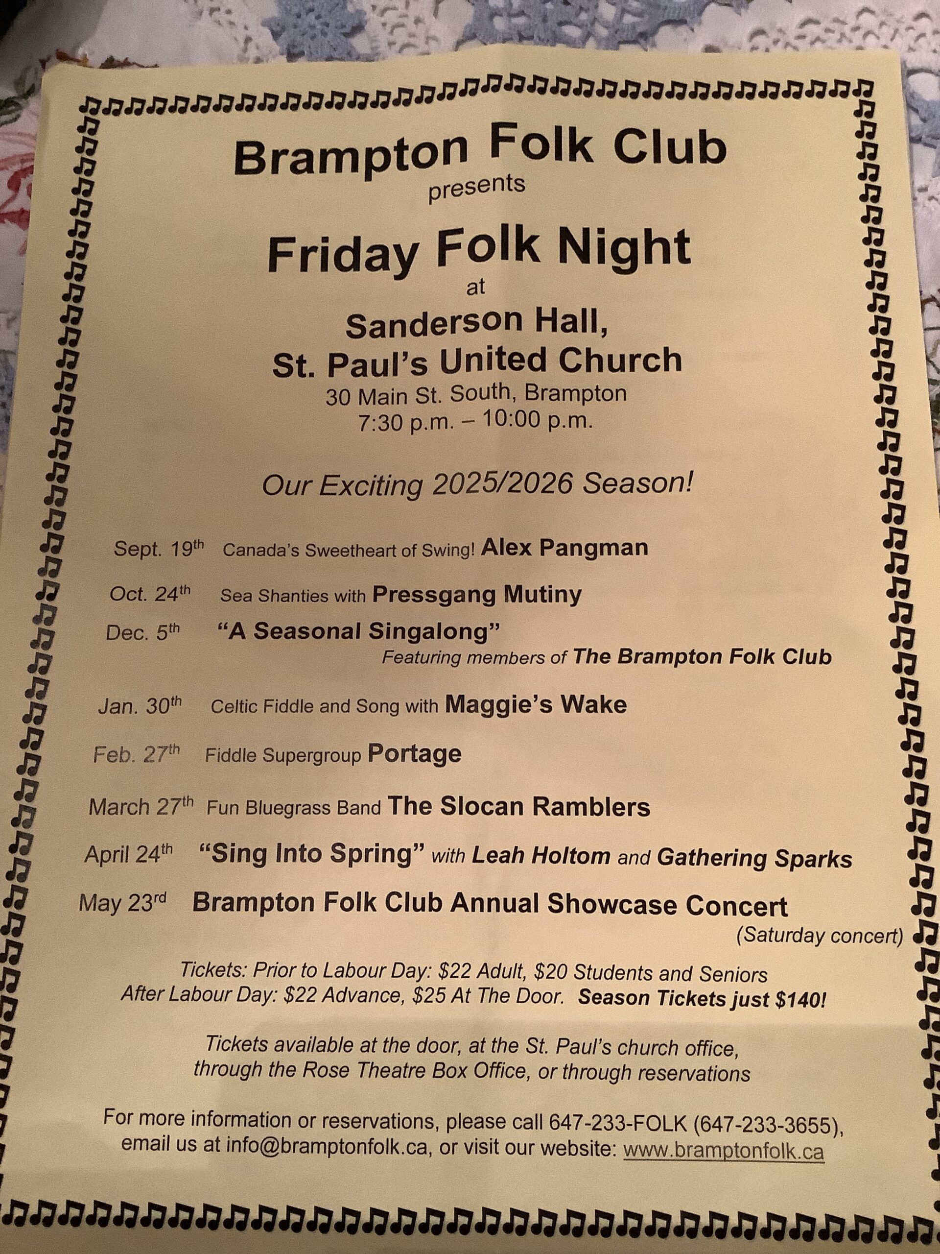 May 23…………,.Brampton Folk Club Annual Showcase Concert (Saturday Concert)